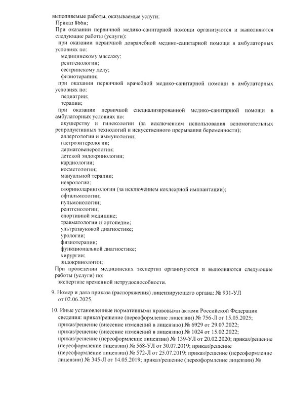 Среди предлагаемых комплексов процедур можно выделить ЛФК, вакцинацию, физиотерапию, лечебный массаж, иглорефлексотерапию, гирудотерапию, ВЛОК, очищение организма. Также мы поможем с подбором диеты.